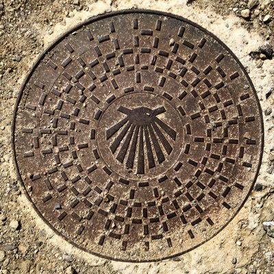 mit dem Kennzeichen des Jakobsweges