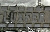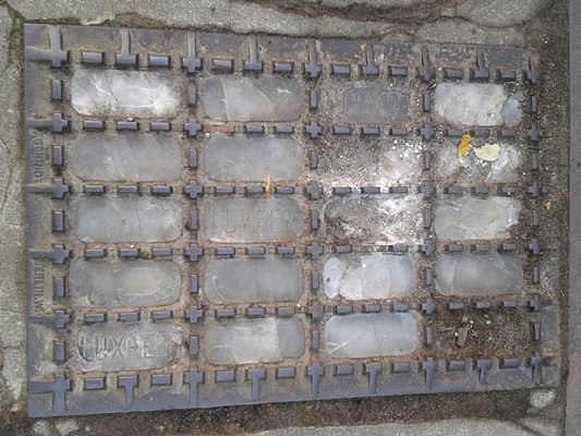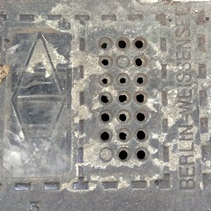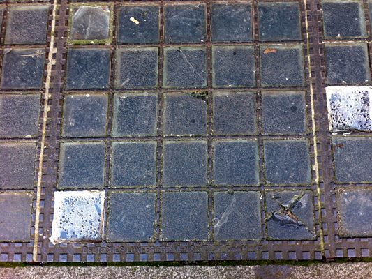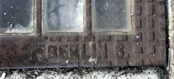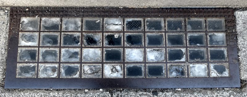 Luxfer Kellerlicht mit stark abgearbeitetem Rahmen nur Berlin S ist noch zu lesen
