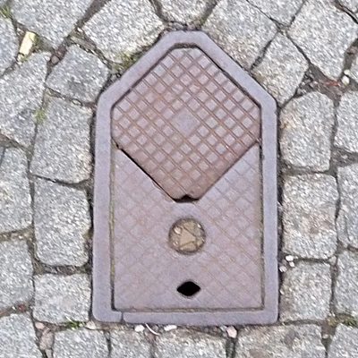 Bild 1435312/2019 Eisenach Absperrklappe kurios, die Schrift ist aus der Richtung geraten