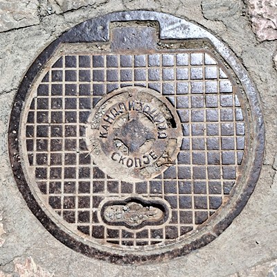 kurios, Kanalisation Skopje (falscher Deckel am falschen Ort)