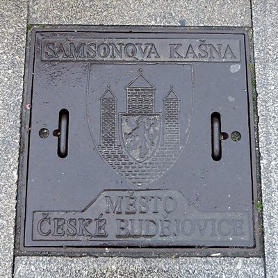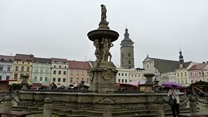 (Budweis) Marktplatz, am Brunnen
