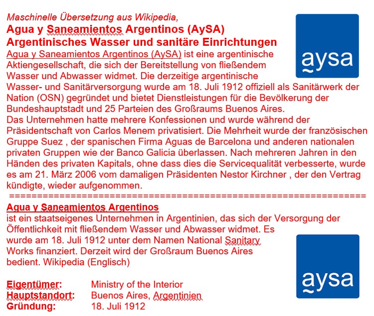 Aguas Argentinas, AySA, Argentinien