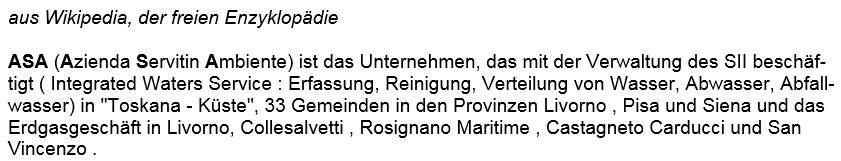 Ver- und Entsorger ASA (Azienda Servizi Ambientali) Livorno Trinkwasser