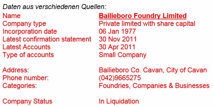 Bailieboro Foundry Ltd., Irland
