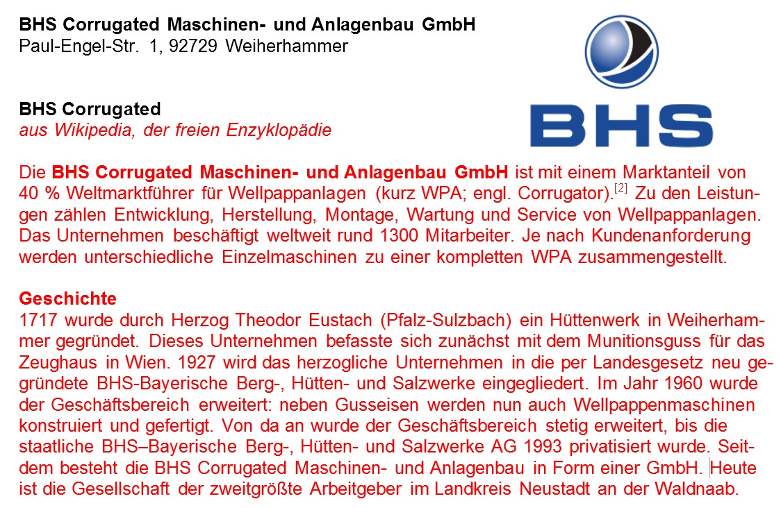 Fa. BHS Weiherhammer