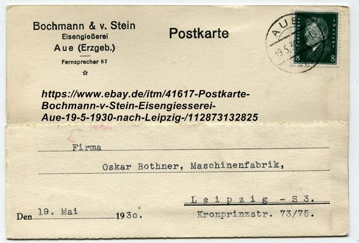 Bochmann & v. Stein, Eisengiesserei Aue i./S.