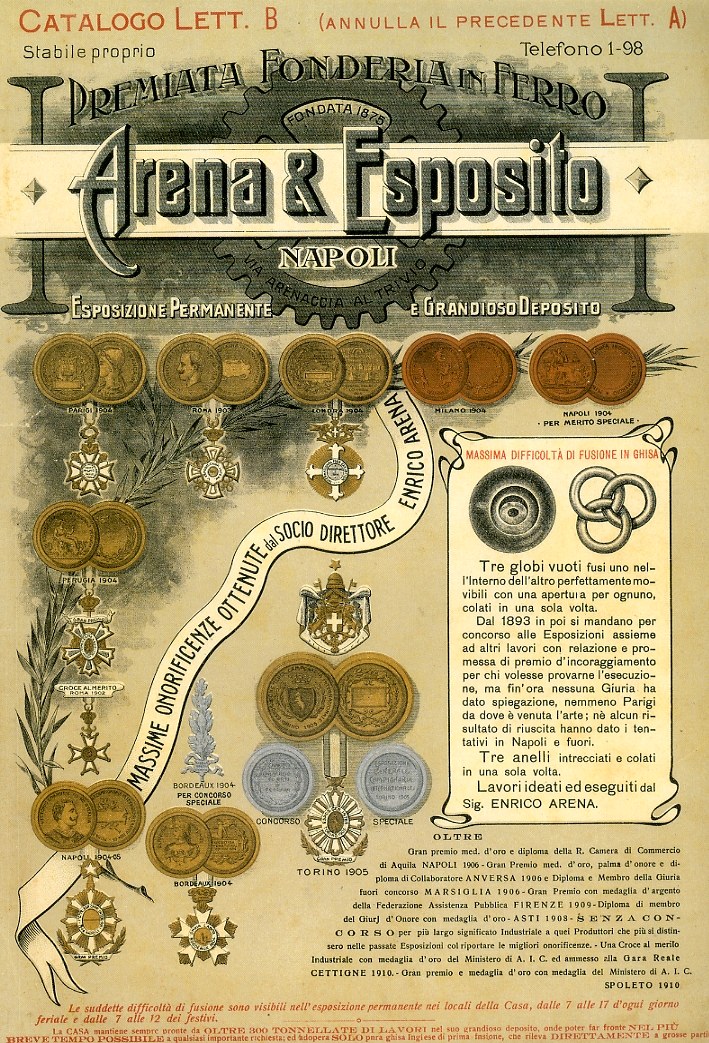 Preisgekrönte Eisengießerei Arena & Esposito, gegründet 1875 in Neapel