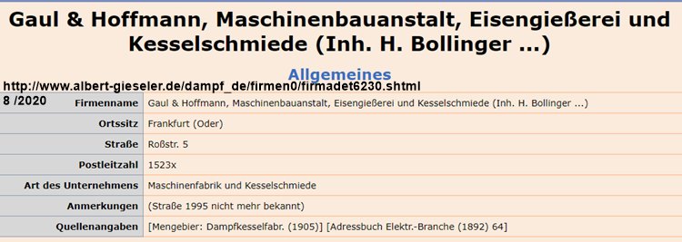 Gaul & Hoffmann, Maschinenbauanstalt, Eisengießerei und Kesselschmiede (Inh. H. Bollinger ...)