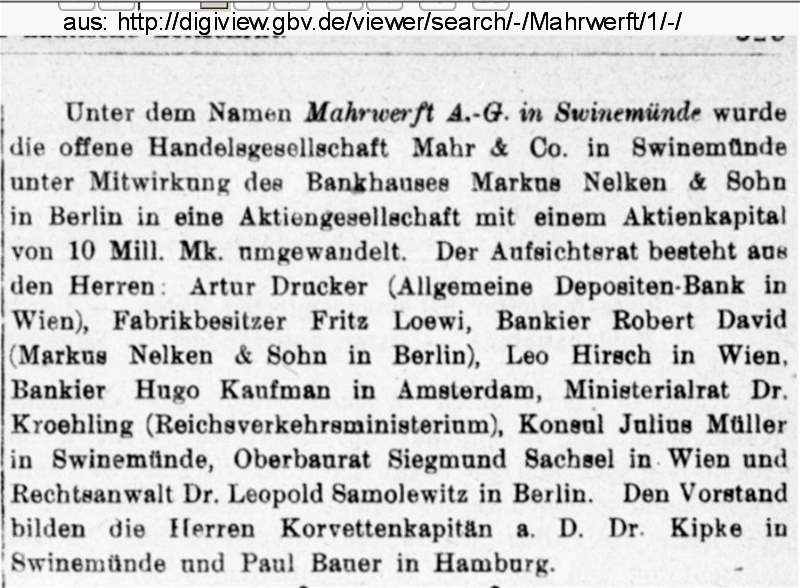 Mahrwerft AG Swinemünde (nur noch schwer lesbar)