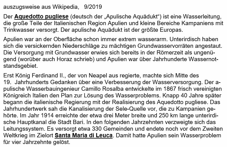 Wasserversorgung, Aquedotto pugliese (siehe unten)