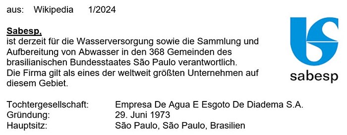 SABESP, Brasilien, SP Wasserver- u. Abwasserentsorger