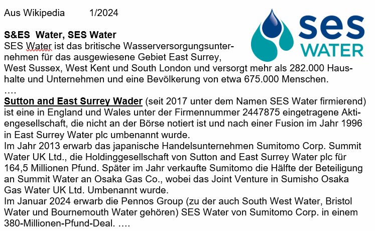 SES Water, S&E S Water, Wasserversorger, GB