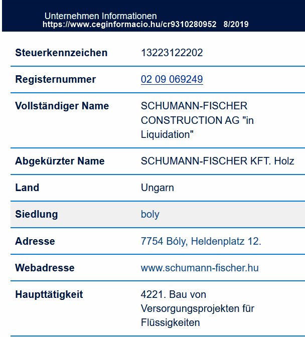 Schumann & Fischer, Bóly, Ungarn