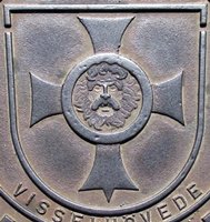 links Wappen der früheren Stadt Villingen, rechts Wappen der Doppelstadt Villingen-Schwenningen