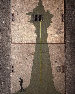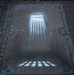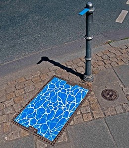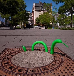Street Art Interventionen auf und mit Kanaldeckeln Installationen, Malereien und