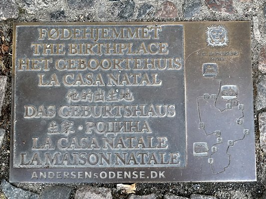 Bild 182137/2025 Dänemark Odense Markierung, das Gaburtshaus von H.C. Andersen