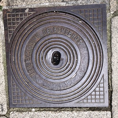 Bild 161274/2023 Spanien Santiago de Compostela uso exclusivo de Bomberos ausschließlicher Einsatz von Feuerwehrleuten (Hydrant ?) fotografiert von Benedikt Eckelt (eckelt.de)