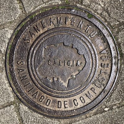 Bild 161694/2023 Spanien Santiago de Compostela Cofunco mit dem Kennzeichen des Jakobsweges fotografiert von Benedikt Eckelt (eckelt.de)
